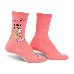 Hamsters are the masters of nonchalance, blissfully ignoring chaos with a sprinkle of humor. Capture that carefree spirit with socks that declare "Everything is Fine," even when the ice cream hits the ground. These quirky socks remind us that sometimes, a little hamster-like denial and a sprinkle of sarcasm can turn any mishap into a whimsical moment.