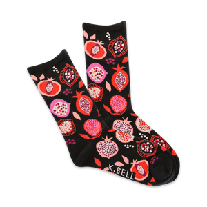 Spice up your wardrobe with our Exotic Fruit Pomegranate socks! You'll feel like you're in the tropics with these black socks sporting a perky pattern of red and pink pomegranates complete with black seeds and green leaves. These crew length socks are perfect for any occasion!