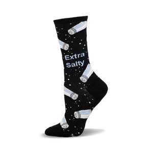 Some days just call for a little extra seasoning, and what better way to express that than with socks that shout "Extra Salty"? These comfy Novelty Cotton crew socks are perfect for those moments when you're feeling sassy and proud. Featuring a bold black design with playful salt shaker images, these socks are here to keep your feet cozy while letting everyone know exactly how you feel.