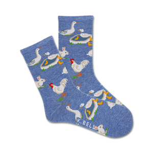 Meet our Farmtastic Socks! These colorful, crew-length socks for women feature a lively pattern of ducks, chickens, and rabbits among a cheerful blue background. Perfect for a touch of country whimsy in your everyday style. Don't be surprised if these socks make you want to dance like a chicken or quack like a duck. Don't say we didn't warn you.
