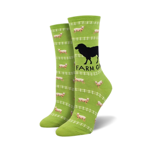 Meet our "Farm Girl" socks, a playful pair made of top-quality cotton, perfect for those with a passion for rural charm. With vibrant green fields, adorable white sheep, and a charming white fence, these socks bring a slice of the farm right to your feet. The words "Farm Girl" stand tall on the side, declaring your love for country living. Whether you're walking through hay bales or navigating city streets, these novelty crew socks add a touch of whimsy to your everyday routine. As you trot around town, picture yourself surrounded by bleating sheep and the fresh scent of hay. Get ready to turn heads and strike up conversations wherever you amble. Embrace your inner farm girl with these delightful socks that blend fashion and fun!