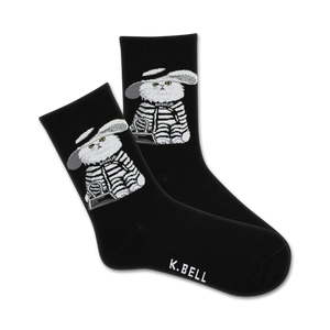 Get ready to strut your stuff with these purr-fectly stylish crew socks for women! Our feline fashionista cat is here to steal the spotlight, flaunting a wide-brimmed hat, a striped shirt, and a designer handbag that's the cat's meow. Slip into these socks and let your feet do the talking - they're the ultimate fashion statement for the catwalk of life! Whether you're a cat lover or just looking to add some whimsy to your wardrobe, these socks are the cat-tastic choice for fun and flair.