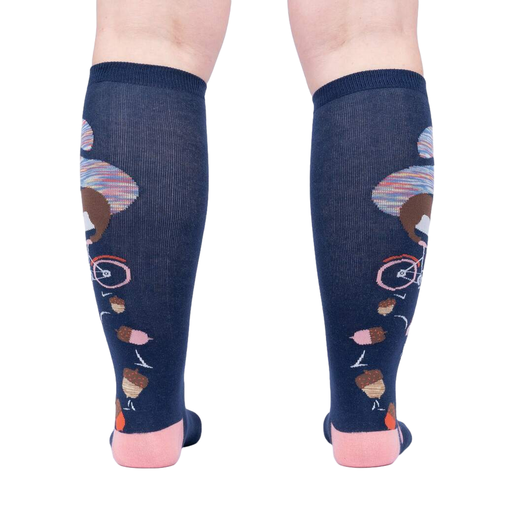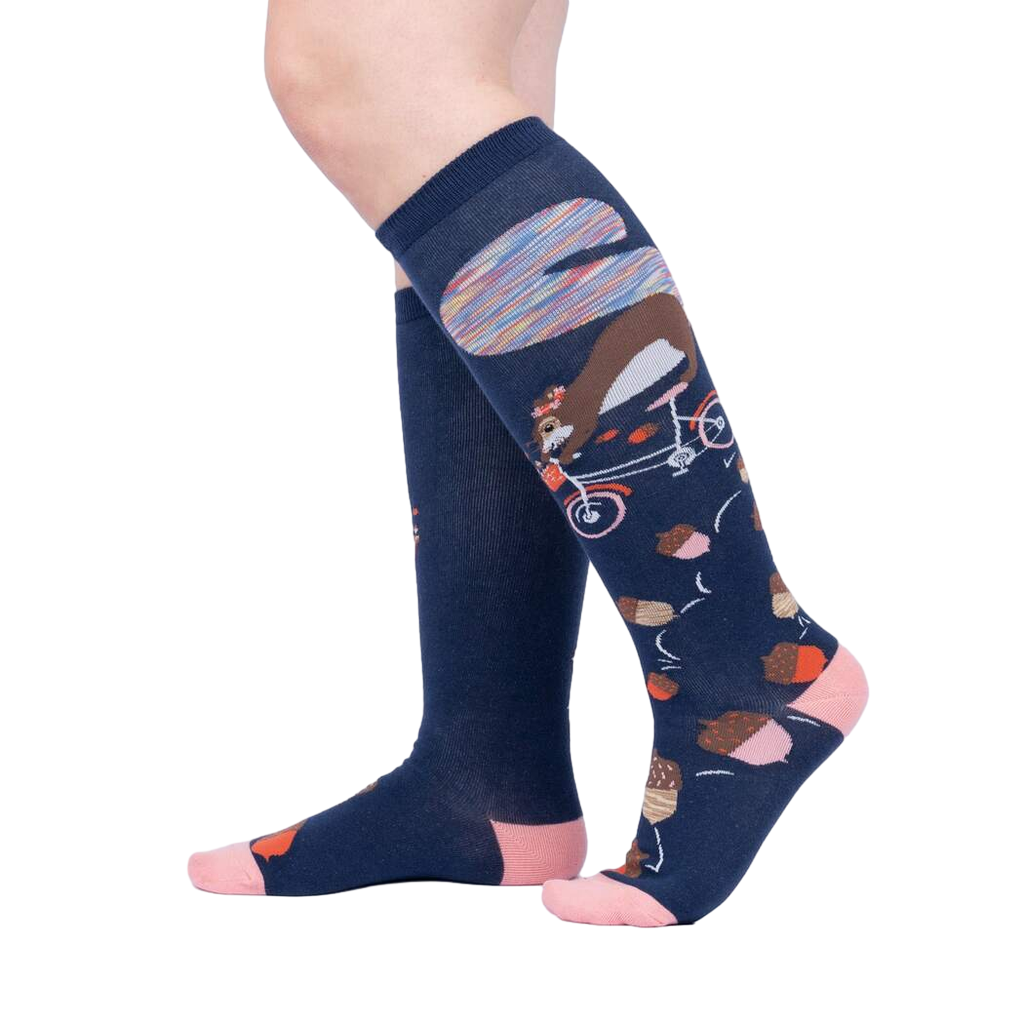 It's fall, so bust out these knee-high squirrel socks and get into the spirit of the season! The socks feature a pattern of brown squirrels riding pink bicycles, and brown acorns with pink tops. Who says squirrels can't ride a bike? Fun fact: A squirrel can climb down a tree headfirst faster than it can climb up!