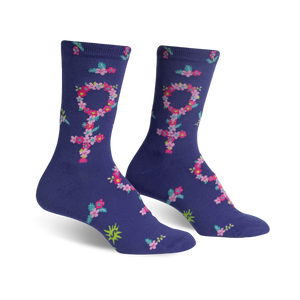 Plant your feet and bloom with Girl Power! With these purple crew socks, you'll step through life with the symbol of femininity and tenacity adorning your feet. Each pair features an eye-catching pattern of pink and green flowers, symbolizing the strength of the female spirit. These socks are a blooming reminder that with every step, you're pretty powerful!