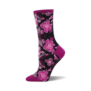 Ready to blossom in your footwear collection? Meet the Fiesta Floral socks! Popping with pink and purple petals amid lush green leaves, these crew-length wonders are no wallflowers. Perfect for garden parties or brightening up the boardroom, they're just the twist your feet need to spark a conversation. So why just wear socks when you can wear a statement? Brighten up your sock drawer with the Fiesta Floral today!
