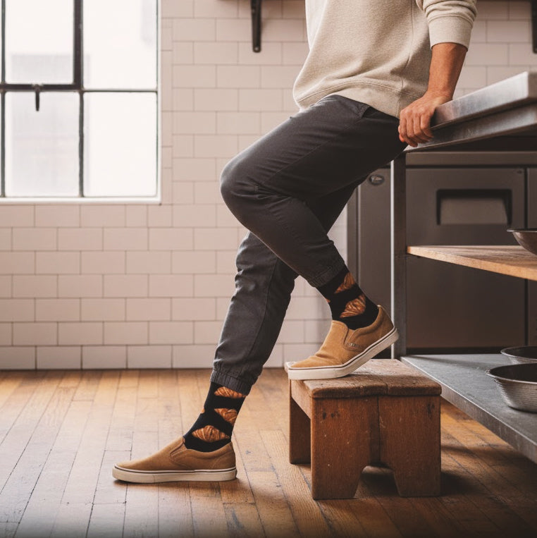 Flakiness has never looked so deliciously good—unless, of course, you're wrapped up in the golden layers of a croissant. Embrace the buttery charm with these Flaky Croissant socks that serve up a delightful twist to your wardrobe. Perfect for those who appreciate a little humor with their style, these socks are a must-have for any pastry enthusiast. And while croissants may be flaky, these socks are anything but unreliable. They're your ticket to a fun, fashionable step forward.