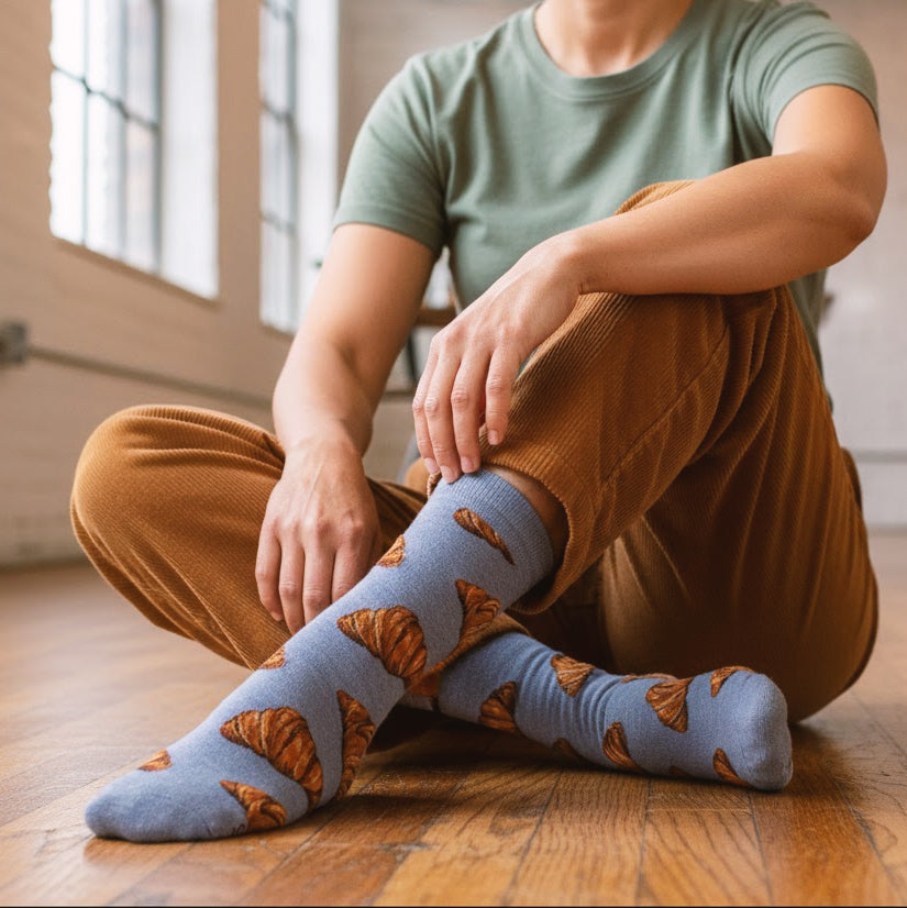 Who knew croissants could be worn? With these Flaky Croissant socks, your feet can partake in the buttery delight usually reserved for breakfast plates. These socks are crafted to evoke the cozy comfort of a morning pastry, making it hard to resist their charm. Pair them with your favorite ensemble for an all-day chic café vibe that feels indulgent.