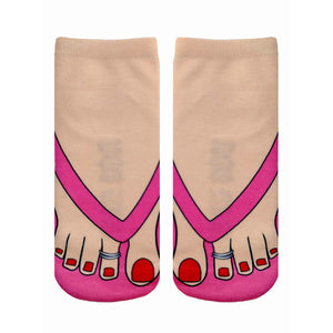 Picture this: you're lounging by the pool, toes wiggling freely in a breeze, sporting a pair of these pink beauties featuring a photo-realistic design of feet in flip-flops. You're practically skipping through summer with every step! Plus, guess what? A portion of your purchase goes to ocean cleanup. So, you can strut your stuff guilt-free, knowing you're saving the planet from plastic waste. Talk about a win-win!
