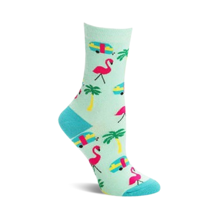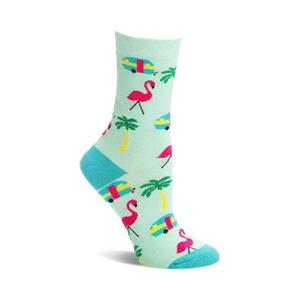 Sprinkle some sunshine into your sock drawer with these vibrant Florida-themed crew socks! Picture this: flamingos strutting their stuff in hot pink, palm trees swaying in Caribbean blue, and adorable vintage campers cruising along in yellow and orange. These mint green socks are perfect for injecting a pop of fun into any outfit. Plus, they make a great gift for anyone who loves the Sunshine State or just wants to add some whimsy to their wardrobe.