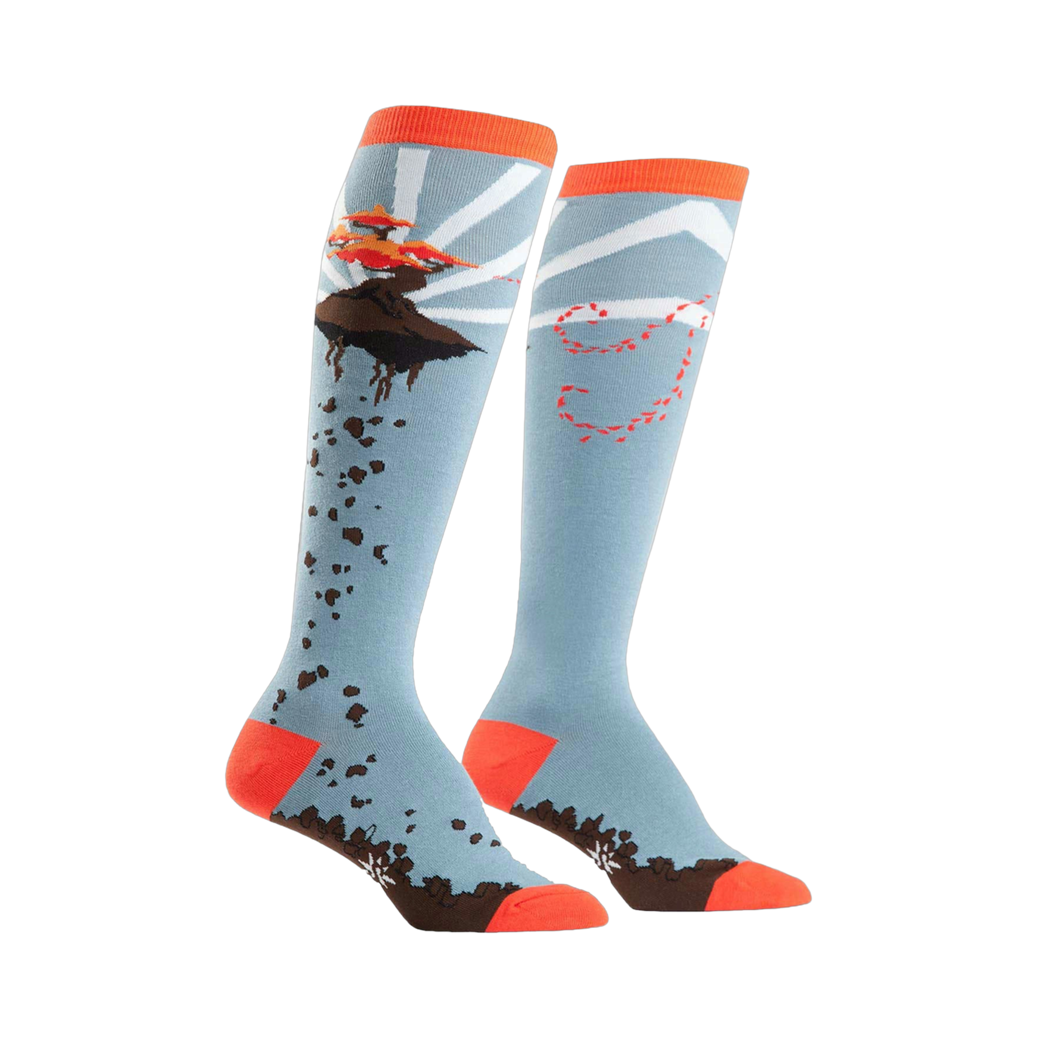Caring for Bonsai trees is said to bring peace, harmony, and a deep sense of relaxation to the caretaker. Elevate your shrubbery to new heights with these really cool knee high Bonsai tree socks! Each awesome pair of dusty blue and orange socks features a floating Bonsai tree being lifted from the dirt of your soles. Channeling your inner Zen has never been this easy!