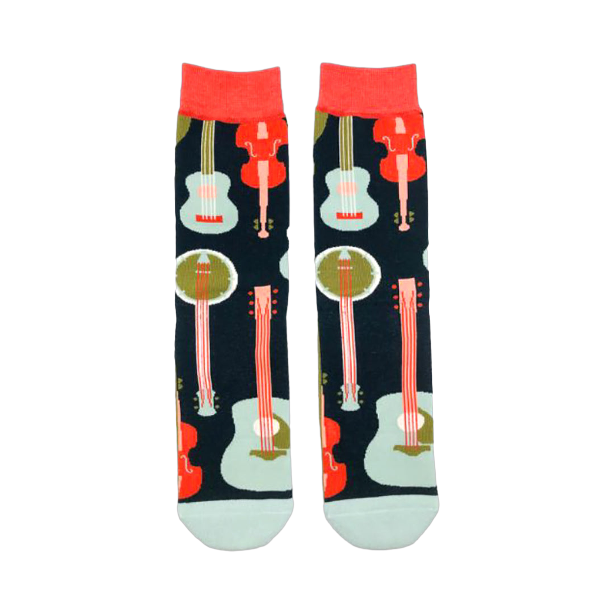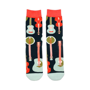 The Folk Yeah! socks rock! These black beauties feature a pattern of guitars, banjoes, violins, and cellos in red and blue. They're crew length, so they'll show off your ankles. Plus, they have "Folk Yeah" stitched on them, so everyone will know you're a music lover. Get ready to make some sweet tunes with these socks!