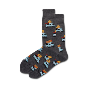 Buckle up and prepare your feet for a flavor-packed ride with these Food Truck socks! Picture this: a fleet of vibrant blue food trucks, each adorned with mouth-watering pizza, juicy hot dogs, and sugary donuts, cruising across your feet. Experience a culinary adventure every time you slip into these socks. So, whether you're a food enthusiast, a secret chef, or simply someone who loves a fun and quirky fashion statement, these Food Truck socks are sure to satisfy your cravings!