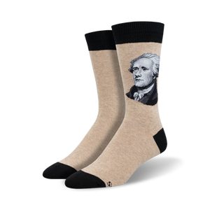 Alexander Hamilton never had the chance to walk around with you in person, but with our Founding Father Hamilton socks, he can tag along every day. With Founding Father Hamilton's face beaming up from your feet, you'll have all eyes on you in no time. Bold enough to turn a few heads, yet subtle enough to leave people wondering if they just saw what they think they did, Alexander Hamilton portrait crew socks keep your feet looking sharp and your style popping.