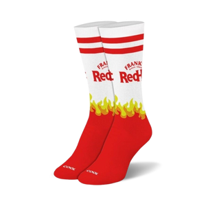 Kick boredom to the curb and ignite your sock game with these flaming hot Frank's RedHot Logo Crew Socks for ladies! The striking red and white design features a fiery flame pattern that'll make you feel like you're walking on coals. The bold "Frank's" and "RedHot" logos add a dash of spice that's sure to turn heads. Whether you're a fan of the iconic hot sauce or just love socks with personality, these are a must-have accessory for your wardrobe. Spice up your style and seize the flame!