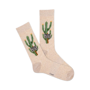 Put out the welcome mat and let your feet do the talking with these Free Hugs cactus crew socks. With their gray background, green cacti, and pink flowers, these socks are a sure-fire way to get anyone to smile, even the prickliest of people. And just when they think you've dropped the ball, surprise them with the unexpected Free Hugs message on the soles. Show the world you're open for business and ready to spread love one hug at a time, starting with your toes.