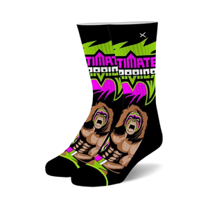 Have you ever wanted to feel like a warrior, but don't have the muscles or the time to train? Well, now you can! Show off your inner strength and legendary status with these Ultimate Warrior socks. Beware, these socks may turn you into a face-painted, long-haired, super-buff dude ready to bodyslam your way through life.