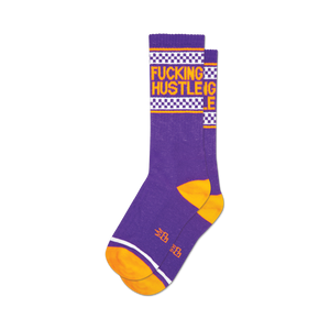 Looking to add a dash of daring to your drawer? Our Fucking Hustle socks aren't just a pair to wear; they're a statement to share! Flaunt your fearless side with bold purple colors highlighted by striking orange heels and toes. But lean in closer - there's a cheeky surprise woven right in. Perfect for the boardroom (if you dare) or a bar night with friends, these socks promise to keep your spirit as charged as your steps. Got a marathon, literal or figurative? Pull on a pair of these and sprint ahead in style. Why whisper when you can roar with your wardrobe?