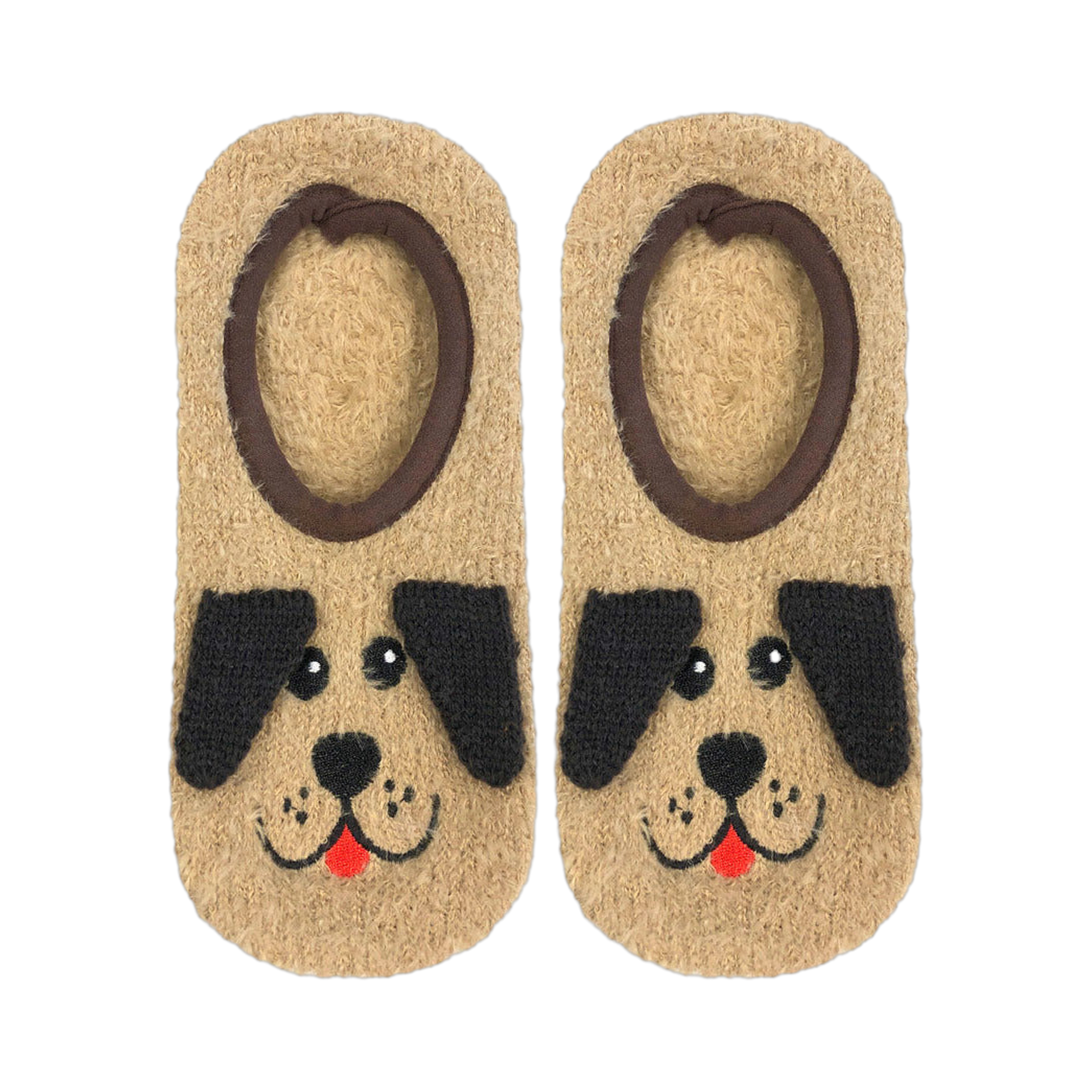 These fuzzy brown socks are sure to be your new favorite furry friends! Featuring cute dog faces on a non-skid sole, these slipper socks are the perfect way to keep your feet warm and cozy while still keeping you on your feet. So put on your puppy paws and enjoy the comfort!