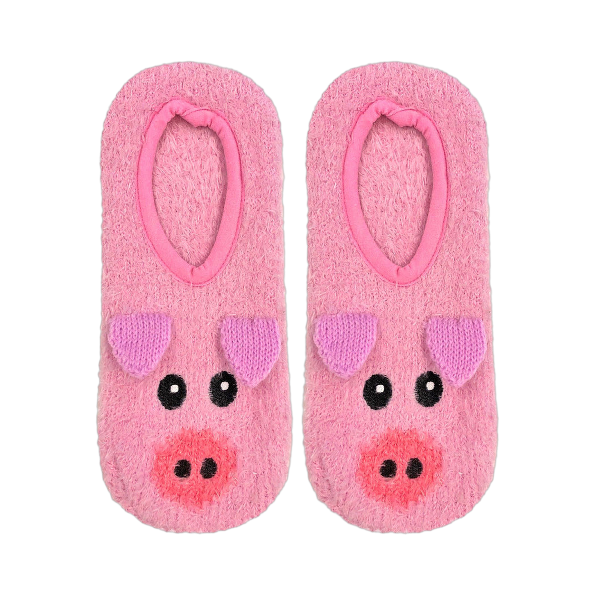 Who needs slippers when you can wear Oink-redibly cozy pig fuzzy socks that are so cute they'll make you squeal with delight? Each pair of pink, ankle-length socks is adorned with adorable pig faces, complete with 2 black eyes and an irresistible snout. The fuzzy material will keep your trotters warm and snug, making them the perfect choice for a lazy day at home or a fun day out. These non-skid slipper socks are a stylish and practical way to add some fun to your sock drawer.