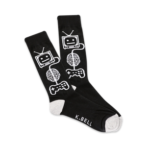 Have you ever wanted a sock that tells the world you're a dedicated gamer? Introducing Game Brain socks, the best way to rep your love of video games and show your commitment to the couch potato lifestyle. With a pattern of white brains topped with tiny televisions and video game controllers, these socks are the perfect way to let everyone know that you're serious about gaming. Like a boss!