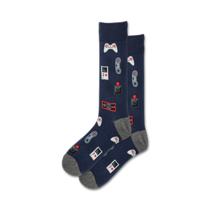 Level up your sock game with these Gaming socks. Forget princess castles, dragons, and boring stripes. Spice up your sock drawer with these pixelated grey and red video game controllers and joysticks. Adventure awaits on your feet.