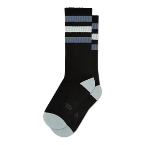 Remember those classic athletic socks from back in the day? These are exactly that vibe, but updated for your feet right now. The George Retro socks come in a solid black, giving them a sleek base. Up top, around the ankle, you'll see a cool set of stripes, alternating between crisp white and a light grey. It’s a clean, no-fuss pattern that just works. The toe and heel parts are also done in that same light grey, tying the whole look together. Simple, sporty, and ready for whatever you're up to.
