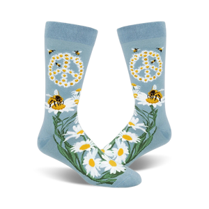 Buzz buzz! Put on a pair of Give Bees A Chance socks and let the bees take you on a summery adventure. Featuring buzzing bees, blooming flowers, and peaceful flower-shaped peace signs, these crew socks for men are sure to make you smile and spread some much-needed positivity. Whether you're tending to your garden, advocating for the environment, or just enjoying a day in the sun, these socks are the perfect way to show your love for nature and add some fun to your everyday style.