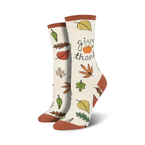 Strut your stuff this fall in our Give Thanks socks! These cheerful crew socks are perfect for women who love the iconic imagery of the Thanksgiving season. The crisp white cotton is adorned with a vibrant autumnal motif featuring golden leaves, plump pumpkins, and festive accents. Grab a pair and give thanks for the simple things in life, or at least your fabulous fashion sense.