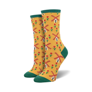 We all know to go Dutch on a bill, but now you can Dutch-ify your sock drawer with these fab women's crew length socks. With a mustard yellow backdrop and a pattern of red tulips and green windmills, these socks will bring a breath of fresh air to your footwear game. And who said socks can't have a green thumb? The top of these Going Dutch socks is a lush shade of Kelly green. So, break out your clogs and wooden shoes, you're going to the Netherlands, baby!