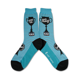 Strut you stuff with a pair of 'GOOD ENOUGH' socks that are VERY OK! Show off your perfect participation trophy status with these blue socks that feature black toes and heels. Whether you're running a marathon or just running errands, these comfy crew socks will remind you that sometimes, good enough is just that - good enough!