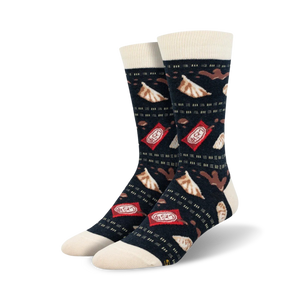 Gyoza, gyoza, how do you pleat? A question only these fun socks can answer. Go on, show these dumplings just how much you love them by wrapping your feet in their scrumptiousness. Available in a crew length with a black base and an all-over print of everyone's favorite Japanese treat.