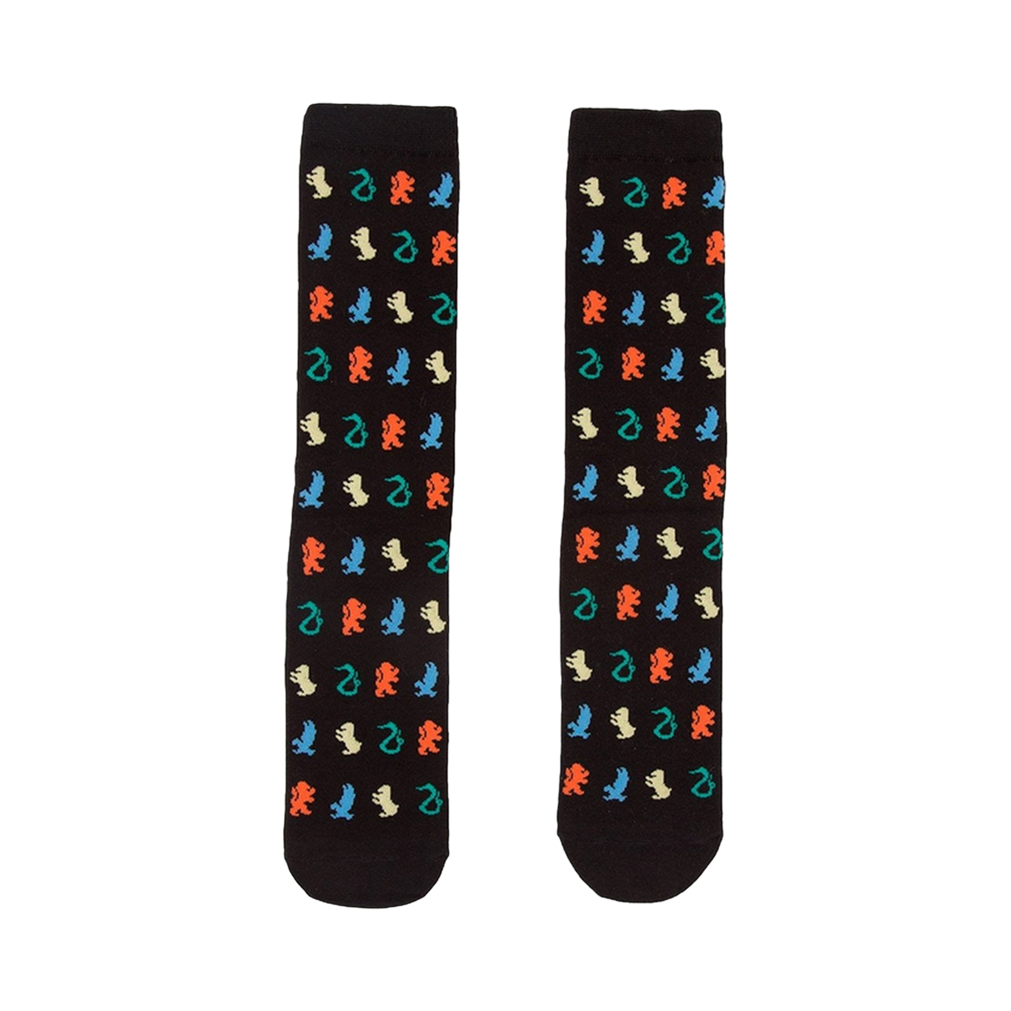 Hogwarts Crew Socks: Step into a magical world with our black crew socks featuring a vibrant pattern of red lions, yellow snakes, blue badgers, and green ravens representing the iconic Harry Potter Hogwarts houses. These unisex socks are perfect for witches, wizards, and muggles alike!