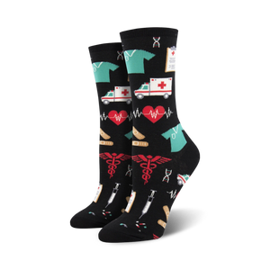 Grab a pair of our Healthcare Heroes novelty socks and put a little laughter in your life! These fun socks proudly display medical-themed illustrations on a black background. From EKGs to hearts, syringes to pills, these socks will add a healthy dose of humor to your everyday wardrobe. And for all the ladies, we've got you covered with our comfy women's crew sock length. A perfect gift for nurses, doctors, or anyone who loves medicine.