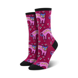 Love dogs and fun mismatched socks? These Heart Dogs socks are for you! Bright pink socks have a pattern of cartoon pink dogs with floppy ears and cute black noses, surrounded by red hearts. Wear these fun, colorful crew socks to show off your playful side and love for your four-legged friends. Fun fact: Did you know that scientists are studying man's best friend for therapeutic purposes? Grab a pair of these paw-some socks to show your support!