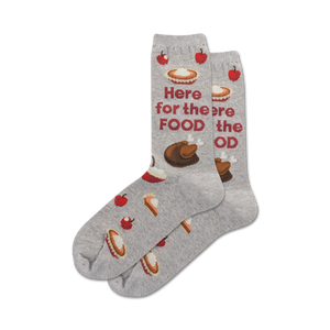 Strut your stuff in style with our Here For The Food socks, a Thanksgiving-themed treat for your feet. Featuring a delightful pattern of pie, turkey, and apples, these socks will make you the life of the party. The words 'Here for the Food' printed on the socks in black add a touch of humor and personality. Get ready to steal the show at the dinner table and beyond.