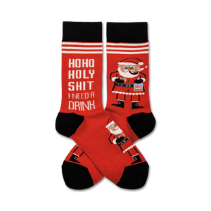 Ho-ho-holy moly! Our naughty or nice socks with Santa smokin' a pipe and sippin' rum will leave you hollering "Ho Ho Holy Shit, I Need A Drink!" They're the perfect pick for those who enjoy a little holiday humor (and a strong holiday cocktail). Throw on these crew length socks and let the jolly vibes flow, knowing you're rocking one very lit Santa (and your new favorite party accessory).