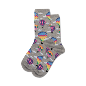 Get ready to take your sock game to new heights with our "Hot Air Balloons" crew socks for women! Picture this: a gray backdrop adorned with a whimsical array of hot air balloons in vibrant colors and playful shapes. From the classic round balloon to the quirky heart-shaped one, each pair is a unique work of art. These socks are the perfect accessory to add a touch of whimsy and elevate your everyday style. So, whether you're soaring through the sky in a hot air balloon or simply running errands, these socks will keep your feet cozy while making a bold fashion statement.