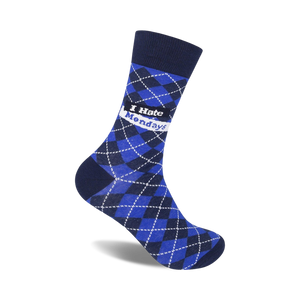 We know you hate Mondays. Trust us, we do too. But these blue crew socks with the words "I Hate Mondays" in dark blue and white might just make your Mondays a little bit more bearable. They're a funny and relatable way to show the world how you really feel about the first day of the week. Plus, they're made for men, so you can rock them with your favorite sneakers or dress shoes.