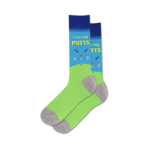 Packing a punchline that'll send your feet into a hole-in-one, our 'I Like Big Putts' socks are going to blow your mind! Rocking a cool combo of bright blue and green colors, these bad boys are sure to drive your golf buddy nuts on the course. Just try keeping a straight face when you see 'I Like Big Putts' grin right back at you. Can't handle the heat? Stay out of the rough!