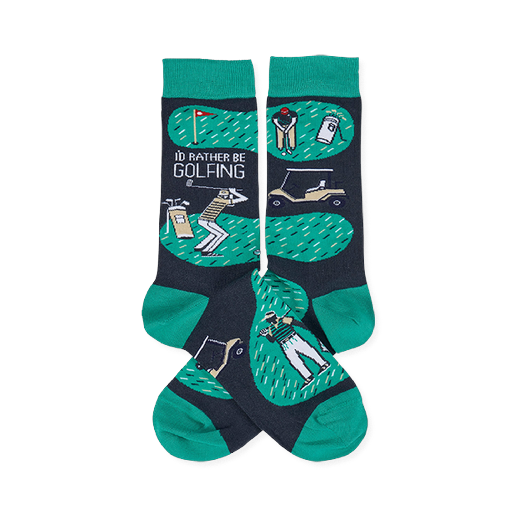 These men's crew socks keep the course on your mind long after you’ve left it. With a playful golf scene worked into the design, they bring together the little rituals that make the game so familiar: the tee box, the cart, the club in hand, the stubborn hope that the next swing will be the clean one. The result is a pair that feels at home with a Saturday round, a casual office outfit, or any day that could use a nod to the fairway.