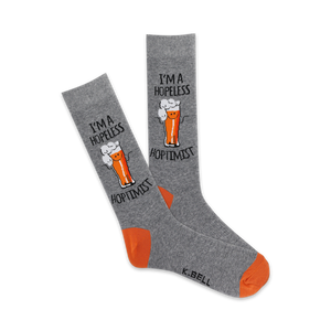 If your feet could talk, they'd say, "Hop in these socks! They're the perfect blend of humor and comfort. With a toasty-warm orange toe and heel, these gray socks feature the words, "I'm a Hopeless Hoptimist," along with an adorable grinning cartoon beer mug. Wear them the next time you're feeling down and need a reminder to cheers up. Hey, you can't spell optimism without "hop!"