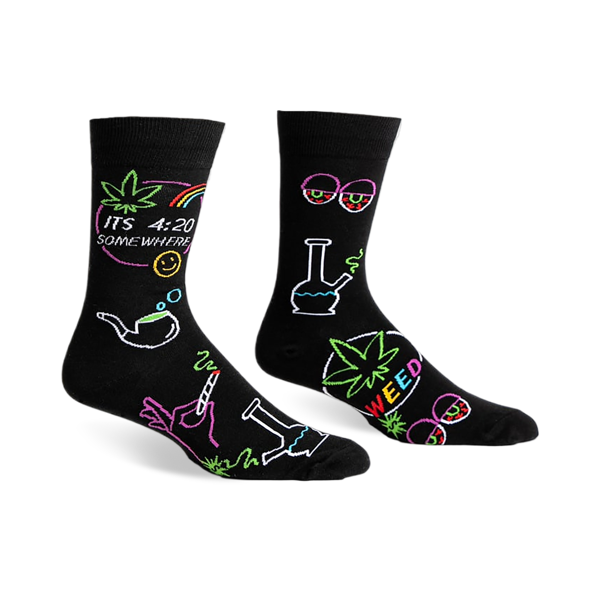 These men's crew socks have enough personality to catch a glance and enough edge to keep the look from feeling too serious. Wear them with jeans, sneakers, or lounge clothes when you want something a little unexpected under the cuffs. The mix of bold icons and tongue-in-cheek humor makes them especially fun for anyone who appreciates a sly reference without needing an explanation.