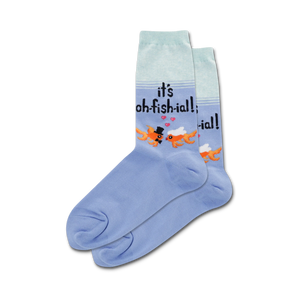 Ladies, meet your new sole mates - the Oh-FISH-ial Wedding Socks! Picture this: a bright blue sea of socks adorned with pairs of dapper orange fish, sporting snazzy black top hats and dashing pink bow ties. These fin-tastic socks are here to make a splash at your next special occasion. Whether you're the bride, the maid of honor, or a wedding guest, these socks will have everyone hooked. So, dive in and make a statement that's oh-fish-ial!