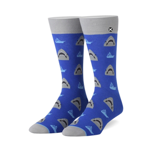 Dive into the deep blue with Jaws Amity Bay socks! These gnarly crew socks feature a school of great white sharks with pearly white teeth just waiting to take a bite. Whether you're cruising the beach or braving the office, these aquatic predators will keep your feet comfortable and stylish. Remember, the scariest monsters live in the deep waters...of your sock drawer!