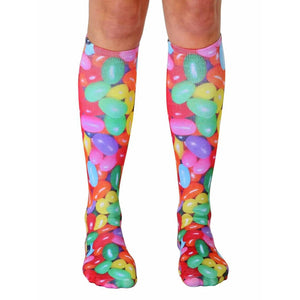 Jelly Bean Bliss: These knee-high socks are covered in a vibrant spread of colorful jelly beans, jumping from the toes right to the top. A burst of sweetness and fun for both men and women, these socks put you in a joyful mood while also adding a touch of sugary fashion to any ensemble. It's the perfect reminder that even in life's toughest moments, we can always use a shot of sugary joy.