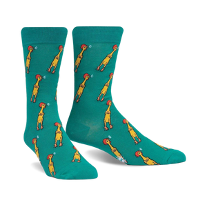 Calling out all chicken-loving, pun-loving people! Prepare for side-splitting laughter in these 'Jokes On You' socks! Made of soft stretchy material, these teal socks feature a hilarious pattern of yellow rubber chickens. Ready to raise poultry-geist with these crew socks? You bet, 'hen' we are!