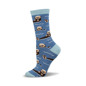 Spotting otters in the wild is like stumbling upon nature's most adorable pranksters. These playful creatures know exactly how to charm with their antics, and now, they can swim right onto your feet. These blue socks with a light blue cuff feature a delightful pattern of sea otters swimming, adding a splash of cuteness to your day. Perfect for those who appreciate a bit of whimsy and want to carry a piece of natures charm wherever they go.