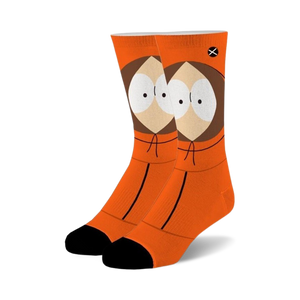 Who says socks can't be exciting? Step into these Kenny McCormick socks and prepare to kick boredom in the shins! The orange hue is a burst of energy that'll make you think that Kenny is kicking boredom to the curb, and the black sole and top add a touch of sophistication. These unisex crew socks are perfect for any South Park fan, and they're sure to make you the life of the party. And who knows, maybe Kenny's luck will rub off on you and you'll avoid getting killed off like Kenny. So grab a pair of these socks, and let the good times roll!
