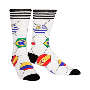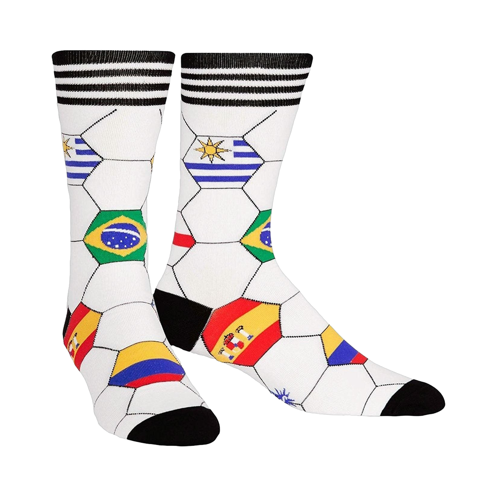 It goes by many names and the ball hits many different parts of the body, but when it comes down to it, there's one thing we can all agree on: soccer rules. Soccer, aka, futbol, is the inaugural sport for 3 year olds who just learned to run and it's also the most exciting sport for middle-aged men to play. The greatest soccer teams in the world- Columbia, Spain, Brazil and Uruguay- are represented on these cool socks!