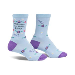 Sometimes, you wake up and just need a reminder to show the world what it means to be powerful. A reminder to kick some ass today. With a gorgeous blue and purple aesthetic, these socks will remind you to go forth and kick ass, honey.
